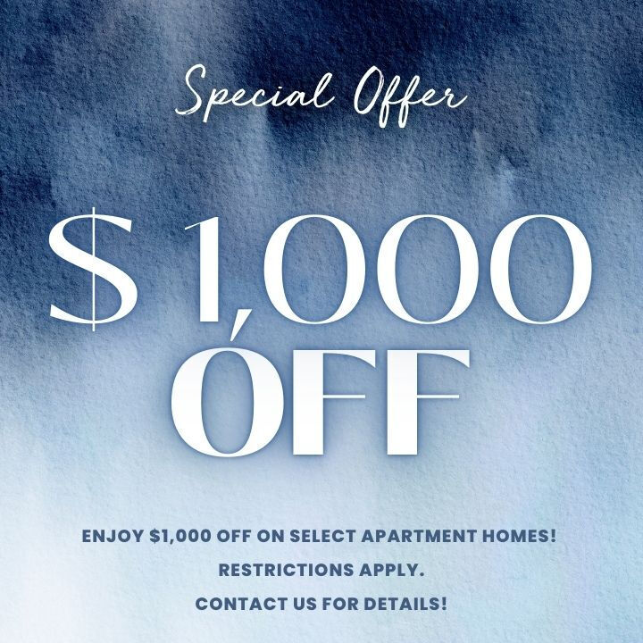 Enjoy a $500 Move In Discount on Select Apartment Homes! Restrictions Apply. Contact Us for Details!